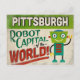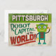Eine lustige Pittsburgh Pennsylvania Vintage Reise-Postkarte mit einem freundlichen Roboter mit lustigem Retro-Text, der sagt: "Pittsburgh, Robot Hauptstadt of the world!"