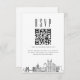 Eine minimale Hochzeitsrsvp QR-Code-Karte mit einer schönen stylisierten Skyline, die die Stadt Pittsburgh repräsentiert. Ersetzen Sie den QR-Code durch einen Link zu Ihrer Website, um Ihren künftigen Gästen die Beantwortung Ihrer Hochzeitsfeier zu erleichtern.