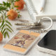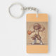 Der Schlüsselanhänger hat einen illustrierten Charakter, der Basketball spielt. Der Charakter trägt eine Basketballuniform mit der Nummer 3 und dem Wort "Baller" auf dem Trikot. Die Kleidung umfasst ein Kopfband, Jersey, Shorts und Sneakers. Der Charakter wird in Bewegung dargestellt, indem er einen Basketball tropft.
