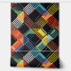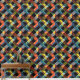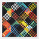 Dieses Kunstwerk zeichnet sich durch ein dynamisches und farbenfrohes Patchwork-Muster aus pixeligen, karton-ähnlichen Quadraten und Rechtecken aus. Das Design ist eine lebendige Mischung aus Farben wie Rot, Gelb, Blues und Grüntöne, Set vor einem schwarzen Hintergrund. Die pixeligen Elemente überlappen sich und überschneiden sich, wodurch ein Gefühl für Tiefe und Bewegung innerhalb der Komposition entsteht. Die Kombination aus geometrischen Formen und leuchtenden Farben, zusammen mit dem Effekt digitaler Pixel, verleiht dem Kunstwerk eine moderne, technisch inspiriert Ästhetik und ähnelt zugleich einem traditionellen Quiltmuster.