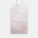 PixDezines strahlt rosa Sand und Meer, eine Küste mit rosa Champagner Blasen Dankeschön Geschenkmarken für jede besondere Veranstaltung. Das Design besaß auch luxuriöse elegante Kalligraphie-Skript in Imitaten Rose Gold. Copyright © 2011-2019 PixDezines™
