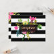 PixDezines Fledermaus Mitzvah Empfang Karten oder Festkarten, Schwarz-Weiß Streifen sind auf DIY Hintergrundfarbe einstellbar mit floralen Aquarell, Ranunculus, Peonies und mums.com. Alle Rechte vorbehalten.