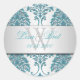 PixDezines florentius Damask in aquamarin auf Imitaten silber Hintergrund, fügen Sie einfach Monogramm für diese herrlichen Hochzeitsaufkleber (Umschlag-Dichtungen). DIY Schriftart und Schriftart Farben. com. Alle Rechte vorbehalten.