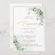 PixDezines: Einladung zur Bestätigung, mit üppiger Vegetation und Kaugummi Eukalyptus; ein Imitat Goldkreuz, Goldstaub und Rahmen mit luxuriösem Kalligrafieschrift. Alle Elemente editierbar und herausnehmbar.