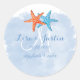 PixDezines starfish in blau und korallorange auf platinblauen Aquarellfarben beeinflussen, monogramm Hochzeitskleber / Umschlagsiegeler, mit DIY Trim, Schriftart und Hintergrund color.com. Alle Rechte vorbehalten.
