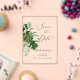 PixDezines variegated monstera, palms, rubber ficus foliage in light and dark forest green and beautiful shade of grey, forest green and ivory. Greenery Save the Date with modern calligraphy script.