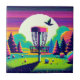 Farbenfrohe lila, orangefarbene, grüne und aquamarine Pixelart Golf Button ai art.