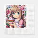 Geburtstagsparty Papierservietten mit einem niedlichen Video Gaming Pixel Art Thema. Niedliches kleines Mädchen mit einem Kuchen, umgeben von Blume und Pixeln, um ein Spielambiente zu geben.