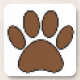 Ein Hundepflaster mit Pixeleffekt, der auf das Bild angewendet wird. Original Cartoon-Design in Schwarz und Braun.