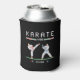 Design porträtiert ein Pixel-Karate-Spiel mit zwei Kämpfern, Life-Bars, Timer und Score.