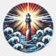 Pixel-Leuchtturm in Sturmsee Runder Aufkleber