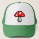 Eine rote, spottige Pixelkunst fliegt einen agarischen Pilz.