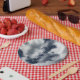 Teller mit blau-weiß pixeliger Wolke