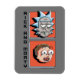 Pixel Rick und Morty Köpfe in orangefarbenen Panels.