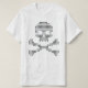 Pixel skull and crossbones in retro grid art, dark teal and cyan highlights. Distinctive digital motif perfect for gamer and streetwear fans, stands out on black tees.