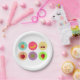 Sechs verschiedene gepixelte Früchte. Dieses Design wirkt auf diese Paper-Teller sehr effektiv