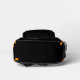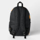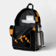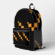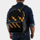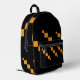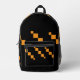 Ein trendiger Rucksack mit einem auffallend pixelförmigen geometrischen Muster in Orange, Schwarz und tiefblau, kombiniert mit praktischer Eleganz. Ideal für Schule, Reisen oder den Alltag.