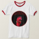 Pixel des Hahn in einen Kreis (rote Linie) und schwarzer Hintergrund mit roter Schrift (nicht anpassbar) auf weißen Männer Tee. — Jahre der Aufstellung: 26. Januar 1933 - 13. Februar 1934 = Wasserroster, 13. Februar 1945 - 1. Februar 1946 = Holzroster, 31. Januar 1957 - 17. Februar 1958 = Waldroster, 17. Februar 1969 - 5. Februar 1970 = Earth Rooster, 5. Februar 1981 - 24. Januar 1982 = Metal Rooster, 23. Januar 1993 - 9. Februar 1994 = Water Rooster, 9. Februar 2005 - 28. Holzroster, 28. Januar 2017 - 15. Februar 2018 = Feuerroster.
