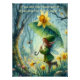 Whimsikale Aquarellbild einer niedlichen pixie in einem grünen Regenmantel mit einem Regenschirm in einem Regenwald. Ein zarter Schmetterling fluttert in der Nähe und sucht Schutz unter dem Regenschirm mit den Feen. Umgeben von blühenden Narzissen erweckt die bezaubernde Waldlandschaft den Charme des Frühlingsregens und magische Kreaturen durch Martinspixs, mit dem Sprichwort "Wenn Ihnen die Blume gefällt, nehmen Sie ihn, wenn Sie die Blume Wasser es Liebe"