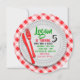 Jede Pizza Party Einladung ist eine runde, flache Einladung volle Pizza mit vielen Stücken. Diese lustige Pizza laden zum Geburtstag oder einfach nur zum Zusammenkommen ein. Sie können den gesamten Text auf der Rückseite anpassen, der auf einer Papierplatte mit Gabel und Messer auf einem roten Tischtuch platziert wird.