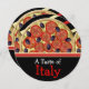 Eine mit geschnittenen Tomaten, Oliven und Käse überzogene Pizzeria ist mit einem schwarzen, roten und cremefarbenen Hintergrund versehen. Personalisieren Sie die Vorlagen zum Anzug Ihres Speisethemen-Party