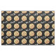 Dieses Gewebe kennzeichnet ein Muster der Pepperonipizzas gegen einen schwarzen Hintergrund.