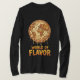 Cartoon Earth as a giant dripping pizza, with distressed text: “World of Flavor.”