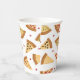 Pizzaslices im Retro-Stil mit allen möglichen Optionen und kleinen roten Herzen auf einem weißen Hintergrund Papier Tassen.
