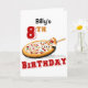 Geburtstagskarten, Briefmarke und Zubehör für ein Pizza-Party zum 8. Geburtstag.