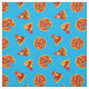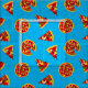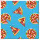 Blauer Stoff gemustert mit Pizzas und Pizzaslics.
