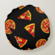 Phantastische Kids runden Kissen mit einer bunten Pizza auf der Vorderseite und Muster von Pizzen und Scheiben auf dem schwarzen. Ideal für Kinder, die Pizzas Lieben essen.