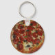 Eine Pizza mit Pfefferoni, Oliven und Paprikaschoten, um Ihre Schlüssel zu tragen.