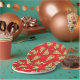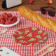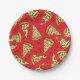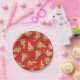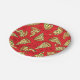 Yummy schauende Scheiben der Pizza werden ganz über diesen roten Teller zerstreut. Vervollkommnen Sie für Ihr folgendes Pizza-Party!