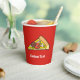 Pizza Slice Cartoon Illustration. Benutzerdefinierte Hintergrundfarbe. Benutzerdefinierter Text auf beiden Seiten.
