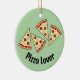Pizza Slices Design Keramik Ornament mit anpassbarer Text- und Hintergrundfarbe.