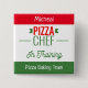 Pizza Backteam / Pizza Koch im Training - fett formatiertes Typografie-Design mit Rot , Weiß und Grün .Personalisieren Sie diesen Button für Kinder mit seinem Namen. Es ist aus dem Geschäft lumirala .