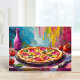 Ein lustiges und spielerisches, modernes Bild einer Pizza mit strukturierten abstrakten Pinselstrichen in kräftigen Farben wie Rosa, Gelb und Blau. Die kühnen Farben und das lebendige Pinsel verleihen der Pizza ein skurriles, energetisches Ambiente, das Essensbilder mit kreativem, zeitgenössischem Kunststil verbindet. Dieses sonderbare Werk vereint Pop und abstrakten Expressionismus und fügt einer beliebigen Umgebung eine Touch Spaß und Spaß hinzu.
