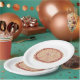 Diese Teller sind mit einem Gemälde einer ganzen Pizza mit roter Soße und Käse versehen.