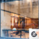 Moderne Fensterdekoration für eine Pizzeria. Firmenname kann individuell angepasst werden.
