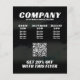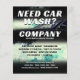 Auto-Waschabdeckung mit dynamischem Bild von Wasserwellen Splash und Luxus-Auto. Enthält Preisliste, Promo-Rabatte und QR-Code.