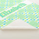 Adorable blanket for a little girl or teenager, combining a striped pattern and a heart pattern on the side, yellow and light blue colors, on a white background. Add color to your daughter's room with this cute addition.