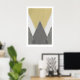 Geometrische Berg-Triptychon-Kunstposter Skandi Goldgrau Mond 3