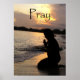 Mädchen beten bei Sonnenaufgang am Meeresufer