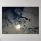 Ein Poster mit einem Bild der Sonne, das durch die Wolken im Himmel schimmert.