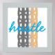 abstrakte Grafik-Design in Poster mit Textgrau, Orange, Türkis. Original-Kunstwerk Urheberrecht Ann Powell alle Rechte vorbehalten.