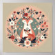 Plakat, Poster Kinderzimmerkoration Diese Illustration zeigt eine sanfte und poetische Szene, die eine Fuchsfamilie in einem künstlerischen Stil hervorbringt, der vom skandinavischen Folklore inspiriert ist. In der Mitte wacht ein Schutzbunker, gezüchtet von heiklen Blumen und Ästen, zärtlich auf seinem Jungen, der zwischen seinen Füßen brütet. Um sie herum bieten Blütenmuster und Herzen eine warme und beruhigende Atmosphäre. Rosa-, grün- und beige-pastelle Farbtöne verstärken die Süßheit des Ganzen, während blütige und pflanzliche Details einen Eindruck der Verbindung mit der Natur erzeugen. Es ist ein Bild, das auf Liebe, Schutz und Familienfreundlichkeit hinweist.