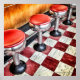 Viereckiges Plakat mit Retro-Soda-Springbrunnen-Hockern der Fotografin Joanne Mariol.