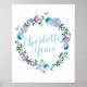 Personalisierte Blumenbäuerinnen und -bäuerinnen drucken moderne handgeschriebene Typografie in einem hübschen Blumenkranz mit eigenem Namen. Ein großartiges und nachdenkliches Geschenk für ein neues Baby. Auch verfügbar mit den Geburtsdetails unten. © Mini Moi Prints
