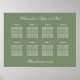 Sage Green 8 Table Wedding Chart Poster, bitte personalisieren Sie die Namen des Paares und die Namen der Gäste zusammen mit einem anderen Text, den Sie vielleicht personalisieren möchten. Ein stilvolles Plakat mit elegantem weißem Text auf einem schönen grünen Hintergrund.
