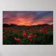 Ein phantastischer Sonnenuntergang mit orangefarbenem Himmel und einem Mohnfeld des Fotografen Dave Fletcher
